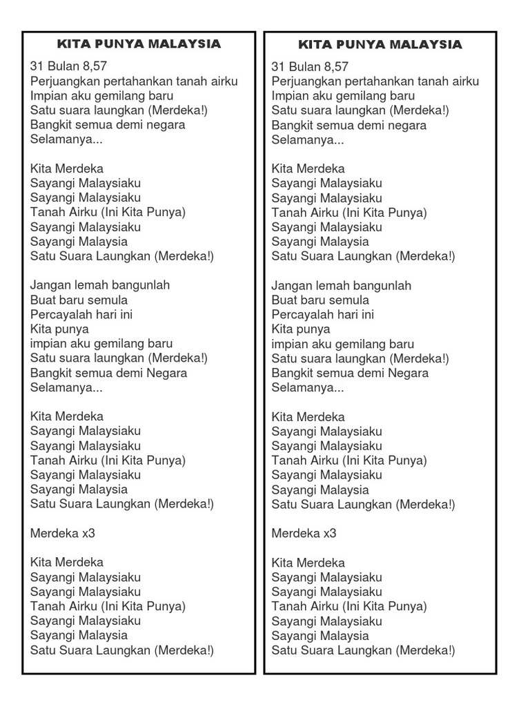 Lirik Lagu Kita Punya Malaysia Pdf